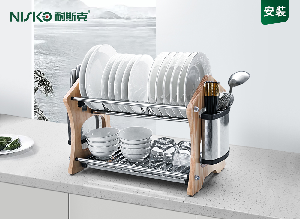 【实木双层不锈钢台面碗碟架置物架】安装视频