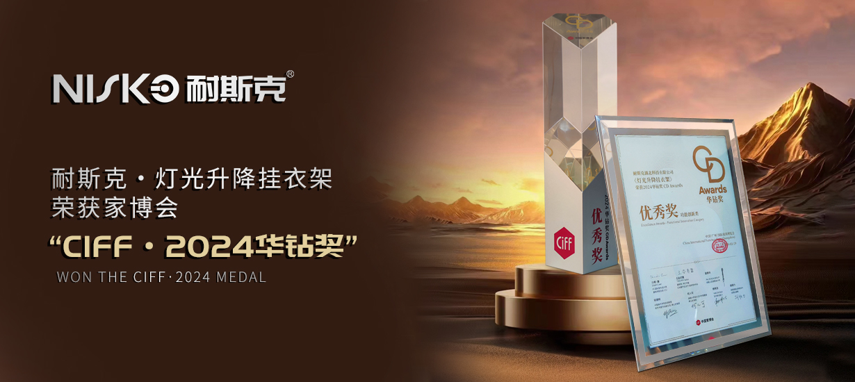 - 耐斯克·灯光升降挂衣架荣获家博会“CIFF·2024华钻奖” 2024-05-07 耐斯克·灯光升降挂衣架荣获家博会“CIFF·2024华钻奖”